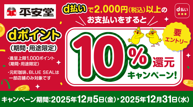 お知らせ・キャンペーン 平安堂全店 図書カードNEXT/平安堂にてご購入・お使いいただけます 全店 11/22(土)23(日)24(月)29(土)30(日) 5日間限定ブルカポイント全品5倍 平安堂全店 11/30(日)まで 2026カレンダーご予約またはお買上げでブルカポイント3倍 平安堂全店 10/1(水)〜11/21(金)ご注文分 e-honキャンペーン ブルカポイント7倍 長野東和田の離れ・飯田の離れ 2025 秋 元町珈琲 2025 秋の限定メニュー 伊那店 地域最大級 カプセルトイショップ gashacoco 伊那店 OPEN! STEP WORLD 平安堂LL英語教室 無料体験レッスン予約受付中 平安堂の英語教室 STEP WORLD 平安堂LL英語教室 飯田店 地域最大級 カプセルトイショップ gashacoco 飯田店 OPEN! 川中島店 地域最大級 カプセルトイショップ gashacoco 川中島店 OPEN! 全店 定期購読お申し込み ブルーカードポイント全品7倍パスポートプレゼント あづみ野店 地域最大級 カプセルトイショップ gashacoco あづみ野店OPEN! 諏訪店 地域最大級 カプセルトイショップ gashacoco 諏訪店OPEN! 長野店 長野県初出店 カプセルトイショップ gashacoco 長野店OPEN! 東和田の離れ・飯田の離れ ドリンクチケット ドリンクチケットがお得です! 元町珈琲 毎月10日・20日 毎月10日・20日は「パンの日」パン全品20%OFF 長野東和田の離れ・飯田の離れ TAKE OUT メニュー 元町珈琲 TAKE OUT ブルーシール長野東和田店・飯田店 8のつく日 8のつく日はハッピーWデー! シングルアイス価格でダブルアイスをGET! ブルーシール長野東和田店・ブルーシール飯田店 アイス・クレープ ブルーシールメニュー 全店 2020.7/1(水)より 2020年7月1日よりレジ袋有料化いたしました 東和田の離れ・飯田の離れ 10/24(金)〜26(日)3日間限定 元町珈琲 ドリンクチケットOFFセール! イベント・フェア 長野店 12/5(金)〜2/1(日) 化石・鉱物・隕石フェア 長野店・伊那店・飯田店 11/29(土)〜12/14(日) クリスマスキャンドルをつくろう! 長野店 11/23(日)12/6(土) キッズシアター 長野店 10/24(金)〜11/30(日) 絵本キャラクターグッズフェア 座光寺店 11/30(日)まで 化石・鉱物・隕石フェア 各店 10/11(土) 〜11/29(土) パンダのおさじ クーさんのレストランお手伝いイベント 各店 9/13(土)〜12/7(日) パンダ銭湯撮影会 上田店 好評販売中 平安堂上田店限定 上田城御城印 歴代城主版 好評販売中! 長野店 ガラスのアクセサリー HARIO Lampwork Factory 各店 10/18(土) 〜10/26(日) おしりたんていがやってくる! 各店 9/27(土)〜10/26(日) ハロウィンキャンドルをつくろう! 各店 9/6(土)〜28(日) プロのための料理専門書フェア2025 伊那店 7/19(土)〜9/28(日) パワーストーンフェア 各店 7/27(日)〜9/27(土) はらぺこあおむしのコラージュを体験しよう! 各店 7/26(土)〜9/23(火) 本屋にかくれた ネコを探せ! 長野店 9/21(日) Keitto おうち絵本をつくろう! 各店 8/2(土)〜9/14(日) 小学館の図鑑NEO クラフトぶっく無料体験会 長野店 7/18(金)〜9/10(水) INSECT MARKET 各店 7/26(土)〜9/7(日) サマーキャンドルをつくろう! 各店 8/30(土)〜9/7(日) こぐまちゃんがやってくるよ! 写真撮影会