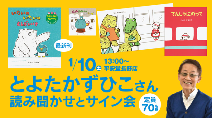 NEWS 2025‐2026 年末年始営業時間のお知らせ お知らせ・キャンペーン 平安堂全店 図書カードNEXT/平安堂にてご購入・お使いいただけます 全店 元日〜4日(日) 元日〜1/4 ブルーカードポイント全品7倍 ※長野店・須坂店は 1/2より 平安堂全店 12/1(月)〜1/12(月) ブルーカードスペシャルクーポンプレゼント 全店 12/5(金)〜31(金) dポイント10%還元キャンペーン 全店 12/5(金)〜31(金) 楽天ポイント最大10%還元クーポン 平安堂全店 11/8(土)〜12/31(水) コミック全巻まとめ買いブルカポイント7倍 長野東和田の離れ・飯田の離れ 2025-2026 冬 元町珈琲 2025-2026 冬の限定メニュー 元町珈琲飯田の離れ 12月の休業日 12月の休業日のお知らせ 元町珈琲東和田の離れ 12月の休業日 12月の休業日のお知らせ 若槻店 地域最大級 カプセルトイショップ gashacoco 若槻店 OPEN! 伊那店 地域最大級 カプセルトイショップ gashacoco 伊那店 OPEN! STEP WORLD 平安堂LL英語教室 無料体験レッスン予約受付中 平安堂の英語教室 STEP WORLD 平安堂LL英語教室 飯田店 地域最大級 カプセルトイショップ gashacoco 飯田店 OPEN! 川中島店 地域最大級 カプセルトイショップ gashacoco 川中島店 OPEN! 全店 定期購読お申し込み ブルーカードポイント全品7倍パスポートプレゼント あづみ野店 地域最大級 カプセルトイショップ gashacoco あづみ野店OPEN! 諏訪店 地域最大級 カプセルトイショップ gashacoco 諏訪店OPEN! 長野店 長野県初出店 カプセルトイショップ gashacoco 長野店OPEN! 東和田の離れ・飯田の離れ ドリンクチケット ドリンクチケットがお得です! 元町珈琲 毎月10日・20日 毎月10日・20日は「パンの日」パン全品20%OFF イベント・フェア 各店 11/28(金)〜3/29(日) 開運堂 パワーストーンフェア 佐久インターウェーブ店・更埴店・東和田店 1/17(土)〜3/29(日) 化石・鉱物・隕石フェア 長野店 1/11(月)〜2/1(日) サンサンキッズとあそぼう! 各店 2/1(日)〜3/14(土) keitto おうち絵本をつくろう! 長野店・若槻店 1/17(土)・18(日) LaQであそぼう! LaQハカセイエローがやってくる 若槻店・東和田店 1/12(月) ・17(土) かみしばい みんなあつまれ! 長野店 1/10(土) とよたかずひこさん 読み聞かせとサイン会 各店 1/10(土)〜3/15(日) だ・る・ま・さ・ん・のおきあがりこぼしをつくろう! 各店 1/10(土)〜3/14(土) LaQであそぼう! 無料体験会 各店 1/3(土)〜3/1(日) うさこのめがねさがしイベント 各店 1/3(土)〜2/8(日) クレヨンしんちゃんがやってくるゾ! 握手&撮影会 長野店 12/5(金)〜2/1(日) 化石・鉱物・隕石フェア 長野店 ガラスのアクセサリー HARIO Lampwork Factory 上田店 好評販売中 平安堂上田店限定 上田城御城印 歴代城主版 好評販売中! 長野店・伊那店・飯田店 11/29(土)〜12/14(日) クリスマスキャンドルをつくろう! 長野店 11/23(日)12/6(土) キッズシアター 各店 9/13(土)〜12/7(日) パンダ銭湯撮影会 長野店 10/24(金)〜11/30(日) 絵本キャラクターグッズフェア 座光寺店 11/30(日)まで 化石・鉱物・隕石フェア 各店 10/11(土) 〜11/29(土) パンダのおさじ クーさんのレストランお手伝いイベント